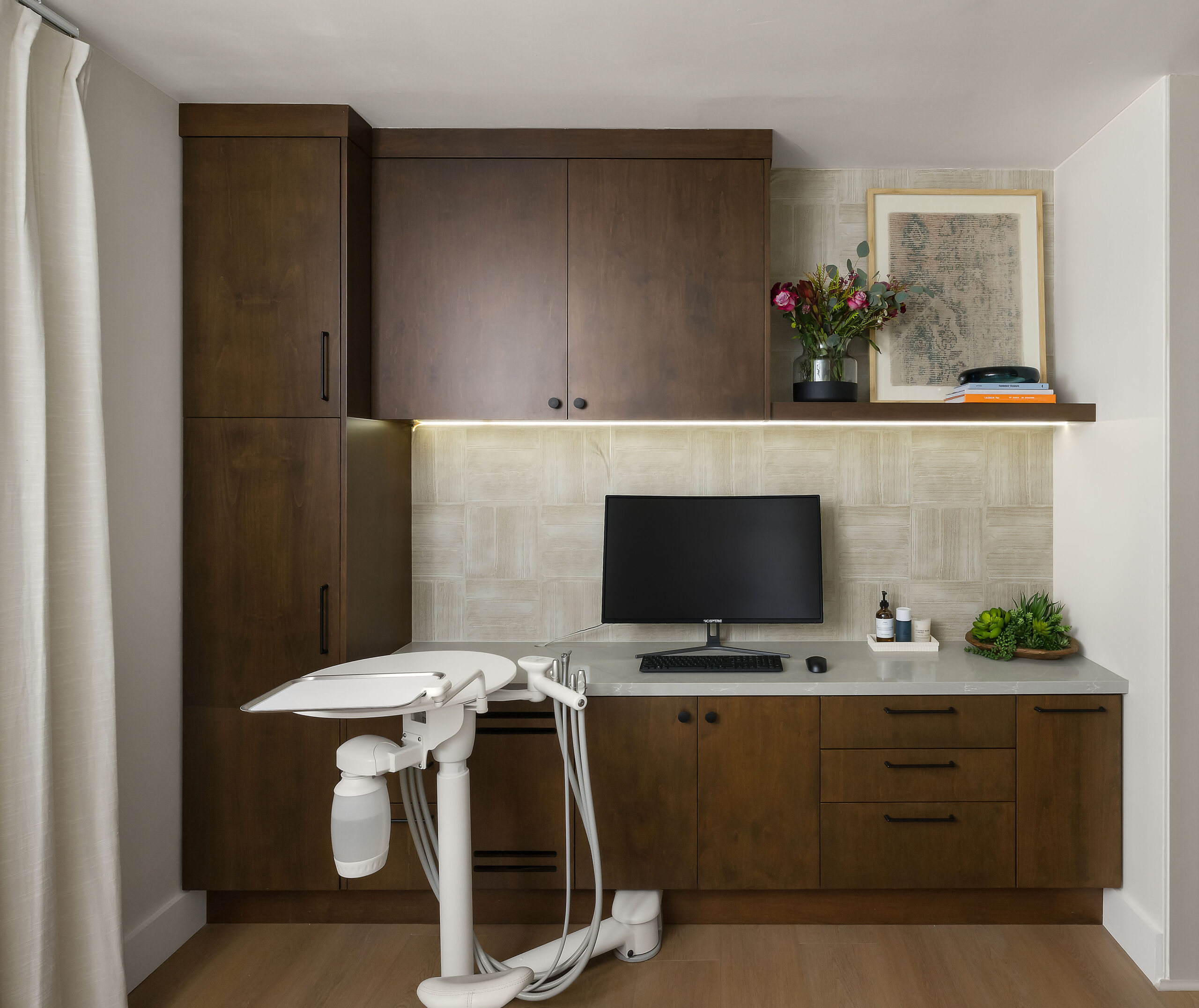 Even though the space is compact, efficient dental office space planning allowed us to maintain a sense of openness and luxury.